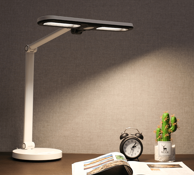 雷士Q36明軒使用三重物理方式進(jìn)行科學(xué)防眩光設(shè)計,內(nèi)嵌式光源,有效的避免光源和光線直接對射眼睛,矩面梯田式的透光板,有效地過濾了過于刺眼的強光,同時臺燈有三個軸體可以進(jìn)行控制調(diào)節(jié),隨意調(diào)節(jié)在舒服的角度和高度??芍С种悄芄飧?,自動控制舒適的光、無藍(lán)光小夜燈,更好的改良睡眠、定時休息,模擬45分鐘模擬課堂。
