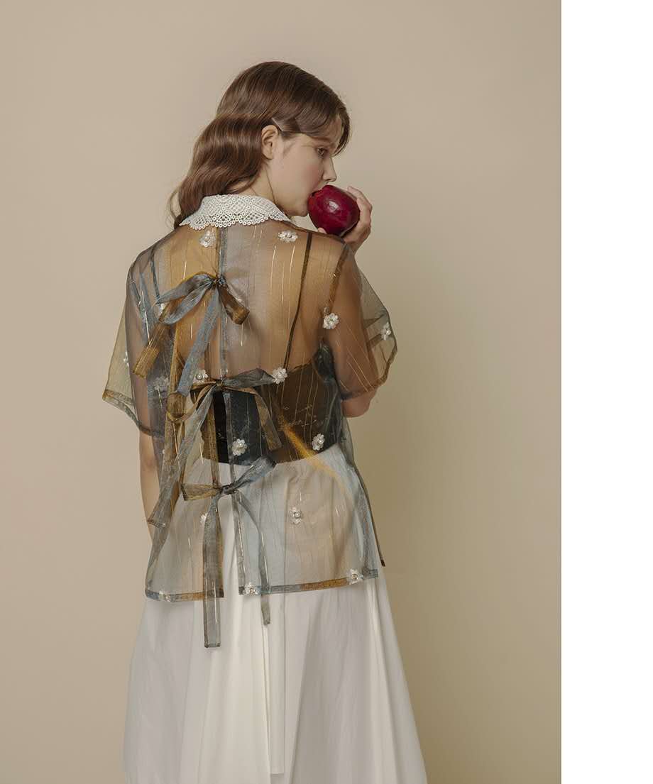 小編第一眼看到這個(gè)款式,就被驚艷到了,怎么能有防曬衫設(shè)計(jì)的這么好看,這么時(shí)尚!防曬衫的背部有三個(gè)蝴蝶結(jié)的系帶設(shè)計(jì),打破了常規(guī)的衣服結(jié)構(gòu),花瓣型娃娃領(lǐng)的設(shè)計(jì)也可愛,別具一格的是防曬衫上面的珍珠刺繡,簡(jiǎn)直是仙女本仙,穿著這個(gè)防曬衫的小編就是街上靚的妞~