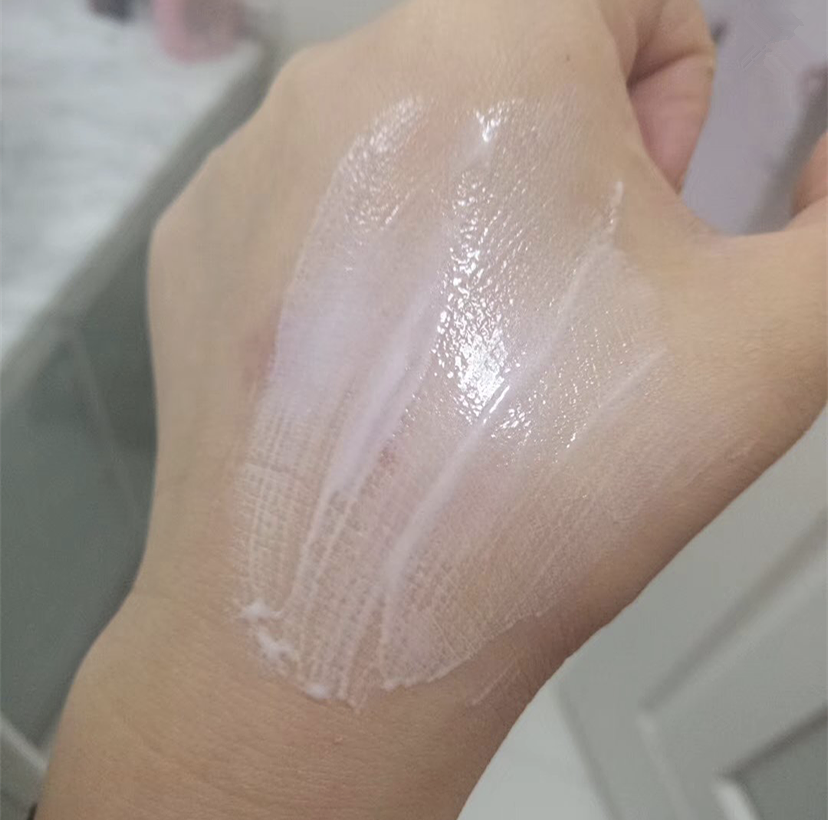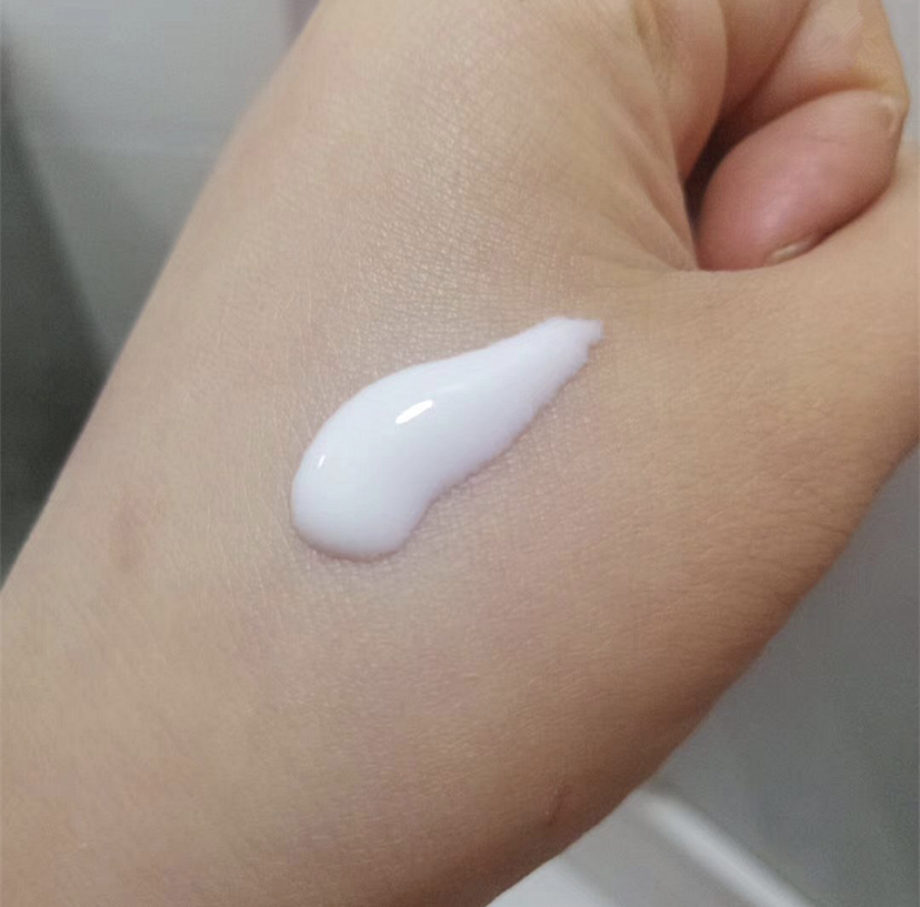 它的質地是乳霜的感覺,流動性不強,抹開稍微提亮,不會假白。