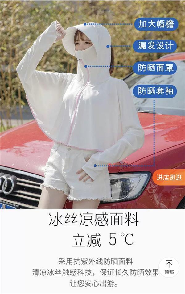 記者瀏覽電商平臺發(fā)現(xiàn), UPF40+等字樣只是常規(guī),不缺面料的科技感,諸如抗紫外線防曬面料、納米防曬纖維、冷凝鈦等字樣扎堆,還醒目標注了涼感、透氣、防水、便攜等功能。