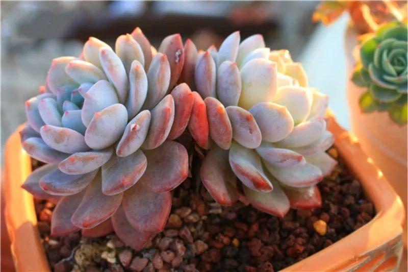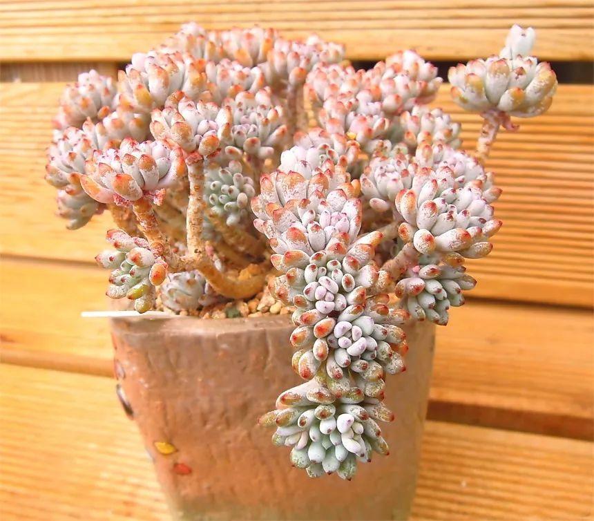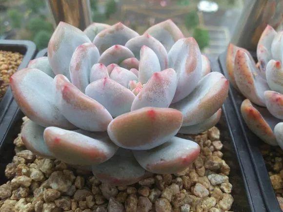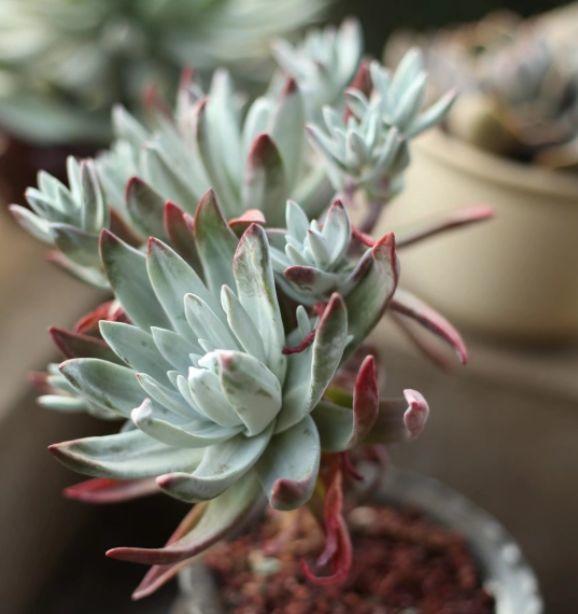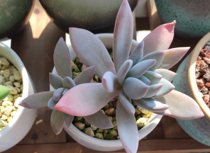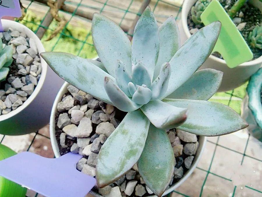 帶白粉的多肉比普通的多肉要更耐旱,葉片上附著一層粉,能減少水分蒸發(fā),在根系控水時(shí)能更好的保持葉子肉肉的感覺(jué)。