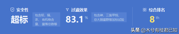 內(nèi)置PP棉、顆粒活性炭、壓縮活性炭和反滲透膜4種濾芯,在加標(biāo)試驗當(dāng)中,其對砷、三氯甲烷等4種污染物平均去除率達(dá)到93.1%,是全部凈水器中平均污染物去除率高的產(chǎn)品。但其在衛(wèi)生試驗中菌落總數(shù)增加量稍多,不過也在合格范圍內(nèi),綜合表現(xiàn)位列第2。