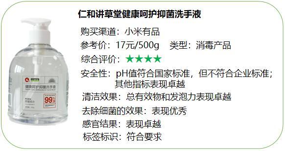 ①6款抗(抑)菌洗手液中,標稱“仁和講草堂健康呵護抑菌洗手液”的產(chǎn)品pH值不符合企業(yè)標識的執(zhí)行標準要求。