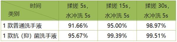 ② 不同的揉搓時間洗手液去除細菌果的對比:在30秒內(nèi),揉搓時間越久,洗手液去除細菌果越好。