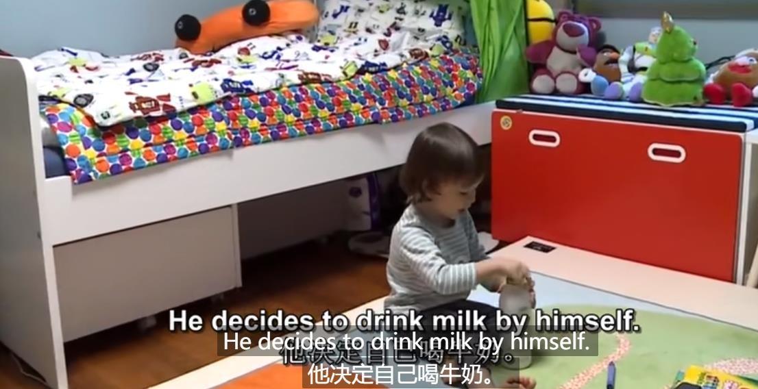 比如這一期,爸爸一下子拎著本特利玩轉(zhuǎn)圈圈,一下子抱著本特利喂牛奶。
