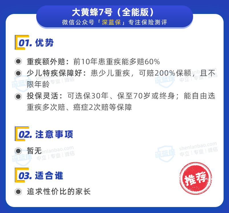 ①大黃蜂7號(全能版):少兒特疾保障好
