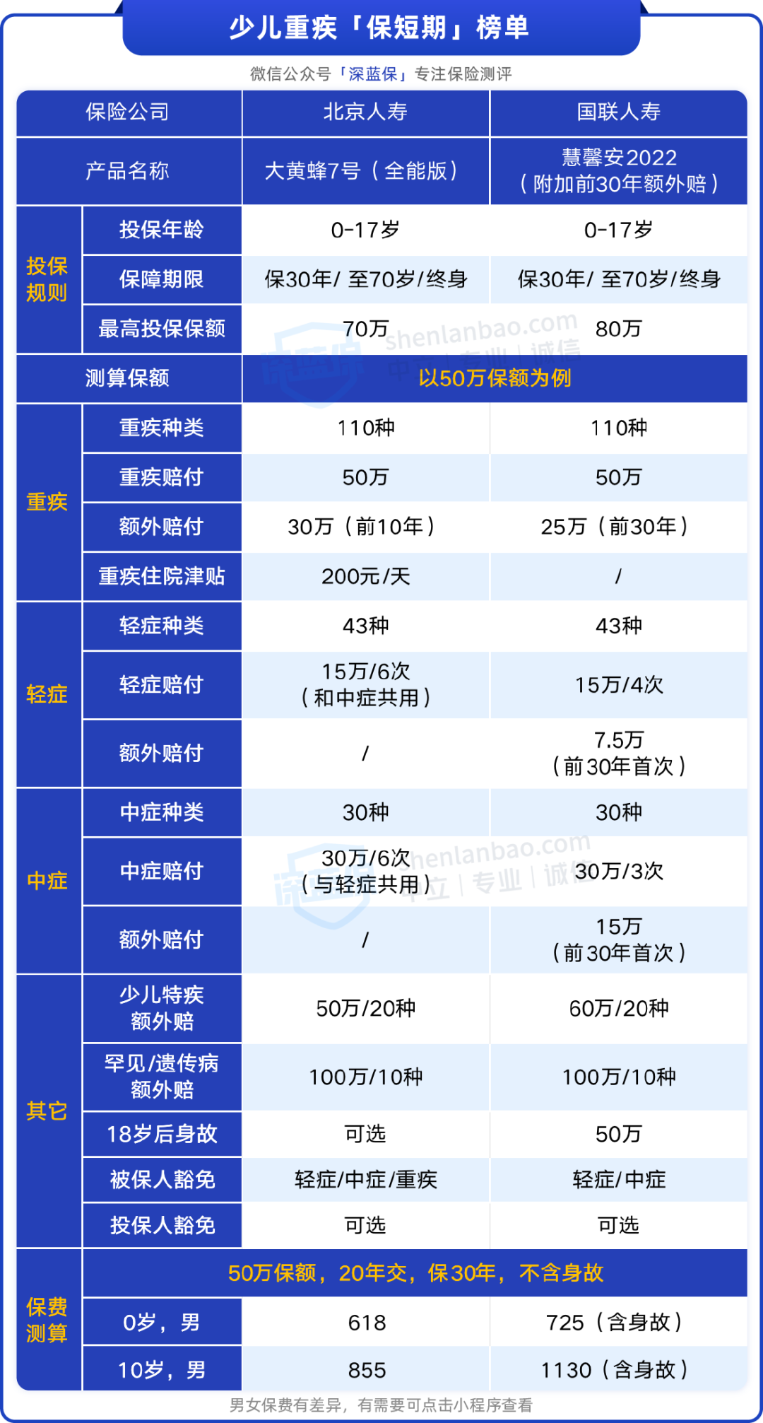 我們挑選出了兩款適合保短期的少兒重疾險,具體如下表: