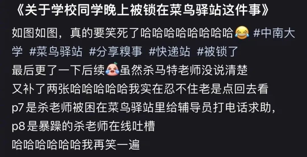 同校同學不小心被鎖在菜鳥驛站后,
