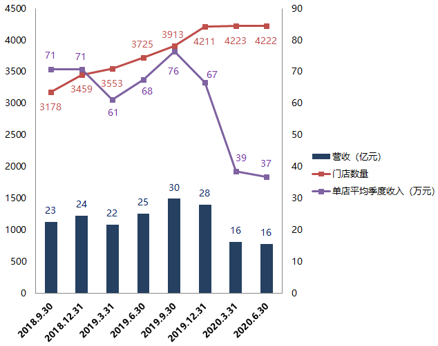 此外,名創(chuàng)優(yōu)品門店數(shù)量的大舉擴張并未形成規(guī)模優(yōu)勢,單店平均季度收入從76萬元的高點降至目前的37萬元,單店運營效率顯著下降。