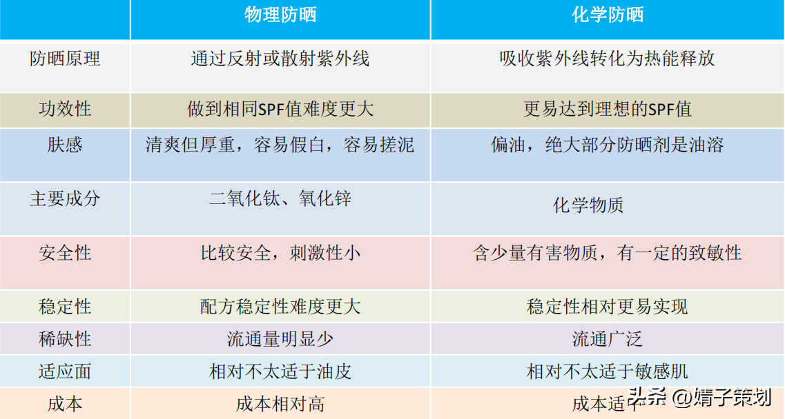 物理防曬與化學(xué)防曬特點(diǎn)比對(duì)