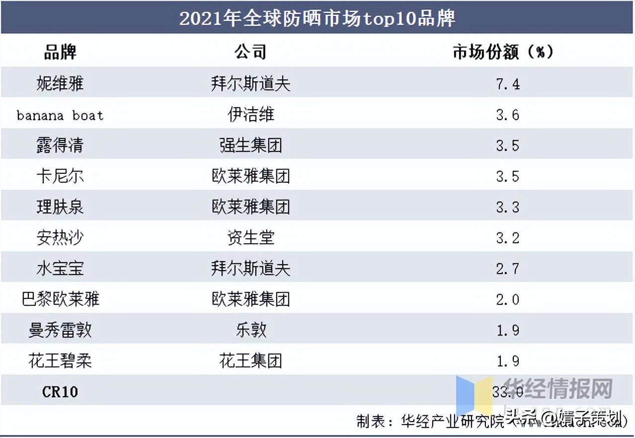 2021年中國(guó)防曬市場(chǎng)top10品牌