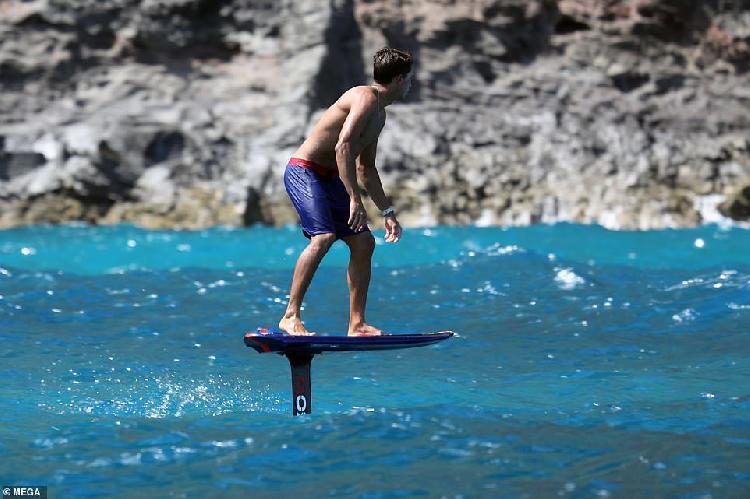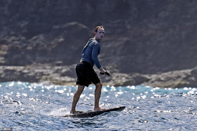 照片顯示,扎克伯格踩著價(jià)值12000美元的電動(dòng)沖浪板,在職業(yè)沖浪手凱·蘭尼身旁來回移動(dòng)。而他的安保人員在離他不遠(yuǎn)的一艘小船上待命。