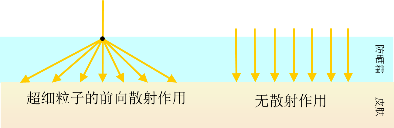 根據(jù)原料商提供的資料:Tinosorb M物理防曬能力為超細(xì)粒子的前向散射作用,具體示意圖如下。
