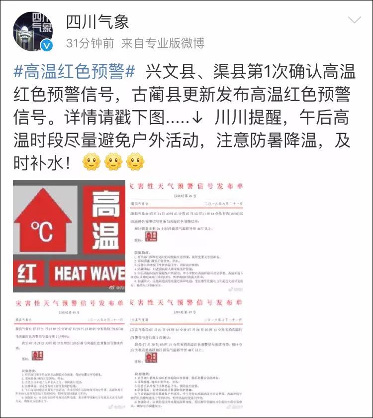 今天早上6時,中央氣象臺繼續(xù)發(fā)布高溫黃色預(yù)警,“四川東部”再次被老師點名……