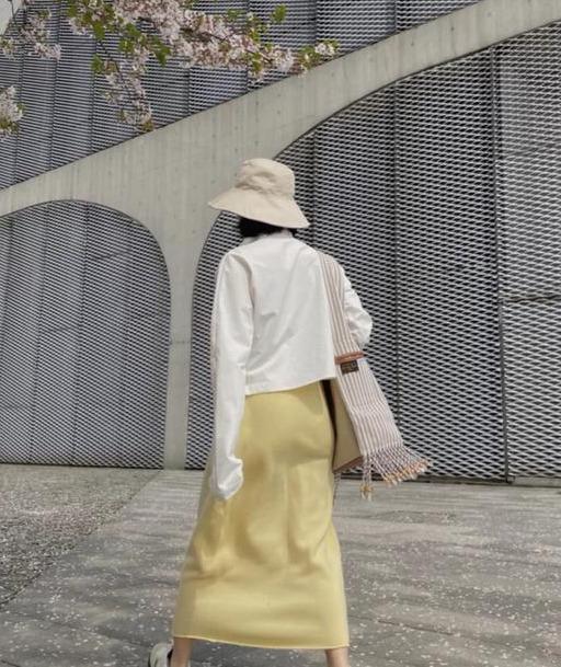 鵝黃高腰寬松半身裙,高腰設計和短款上衣搭配更合適,高腰設計顯腿長,拉長腿部比例。顏色也很適合夏天,十分清新淡雅。