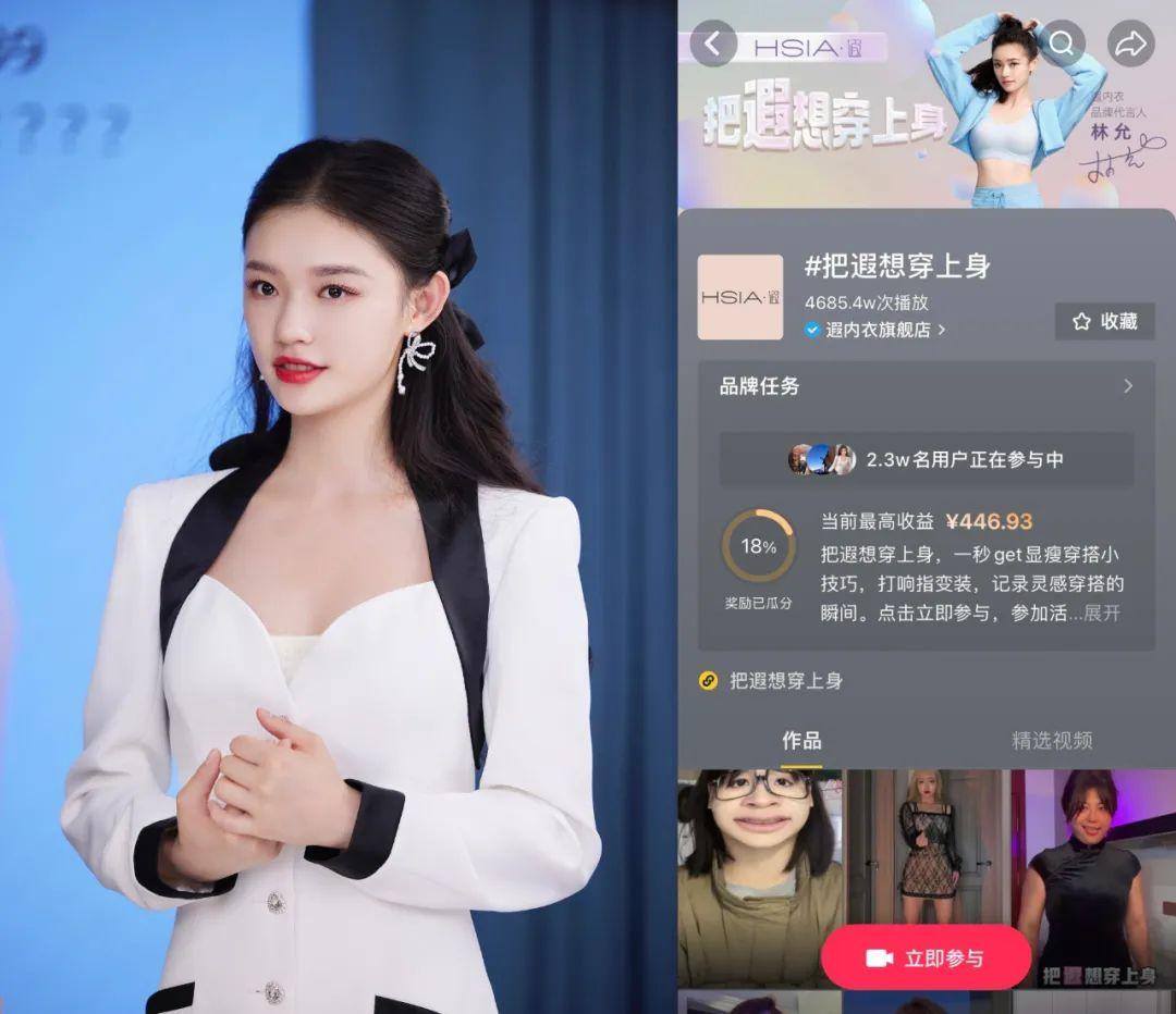 挑戰(zhàn)賽以#把遐想穿上身 為話題,遐將產(chǎn)品與品牌進行了巧妙融合,不僅融入了品牌名,還傳達出背后的主張:在穿上「遐」內(nèi)衣后,能夠勇敢憧憬、自由自在,不受約束,大膽自信。同時,「遐」也邀請了多位女性達人創(chuàng)作變裝視頻,讓品牌主張進一步滲透目標圈層。
