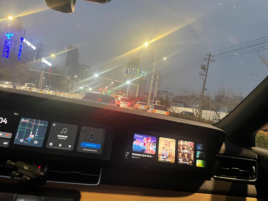 坐在副駕的我悄悄拍照,窗外就是縣城的霓虹燈