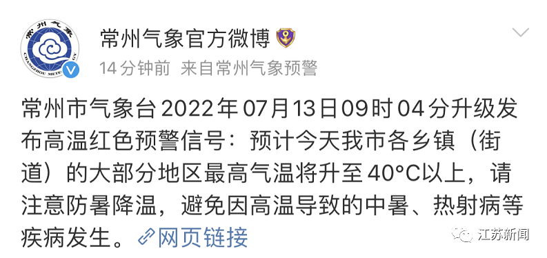 高溫紅色預(yù)警連發(fā)!江蘇疾控緊急提醒剛剛