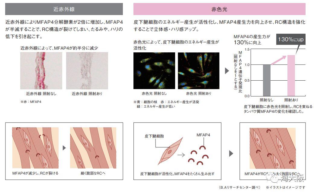 POLA數(shù)據(jù)顯示,“紅色光”照射的皮膚,MFAP4的產(chǎn)生能力能提升130%?。?/p>
