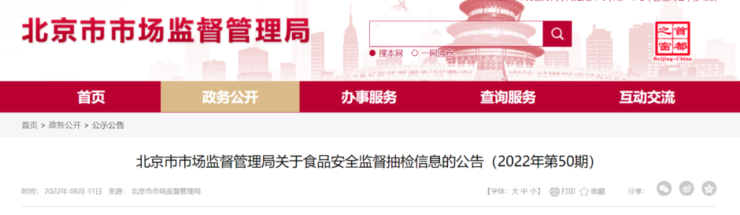 8月31日,北京市市場監(jiān)管發(fā)布局關于食品監(jiān)督抽檢信息的公告。次此次共抽檢6類食品565批次樣品,檢出不合格樣品9批次,涉及:標稱天津市大海實業(yè)發(fā)展有限公司生產的大海醬板鴨(腌臘風味)、北京華聯(lián)生活超市有限公司豐臺馬家堡分公司經(jīng)營的油菜、標稱泰州市成央記食品制造有限公司生產,分別由北京順鑫平達商貿有限公司在餓了么(手機APP)美華生活超市和北京德亨通商貿中心在美團(手機APP)億佳購連鎖超市(中上園分店)銷售的2批次海南老椰汁(植物蛋白飲料)、北京鴻達乳品有限公司生產的0脂肪藍莓發(fā)酵乳等。