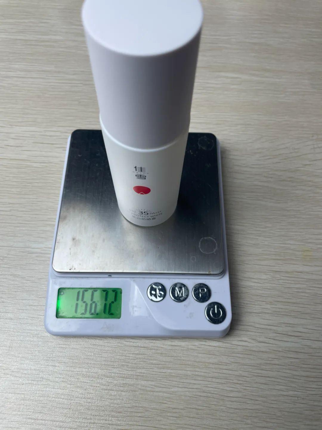這次測評的防曬霜,大部分都是塑料包裝,其中佳X是玻璃瓶裝,里面的防曬霜才40g,總重量卻有156g。看起來小小一瓶,放在小手提包里很重。