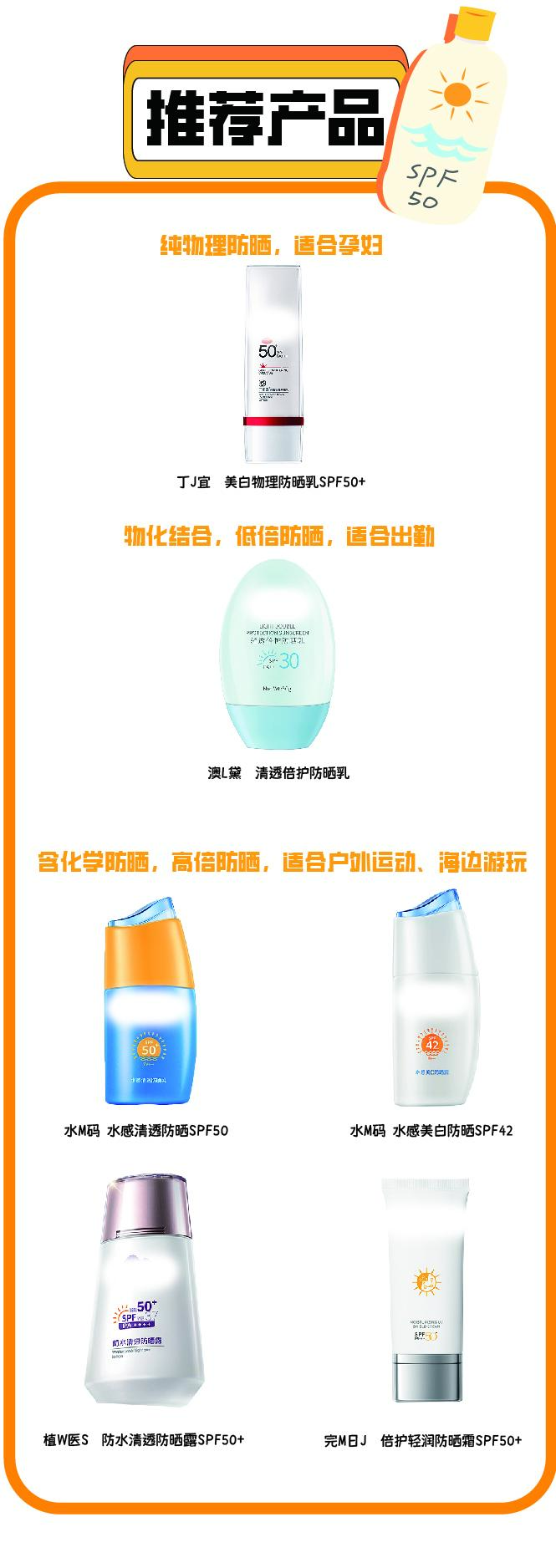 從粘膩程度、膚感評價、泛白程度等綜合考慮,水M碼 清透防曬SPF50、水M碼 水感防曬SPF42、丸M 小銀鉆激白SPF35、春J 50gSPF50、春J 45gSPF50、植C集 清爽SPF50+、完M日J 倍護SPF50+、佳X SPF35表現(xiàn)比較好。