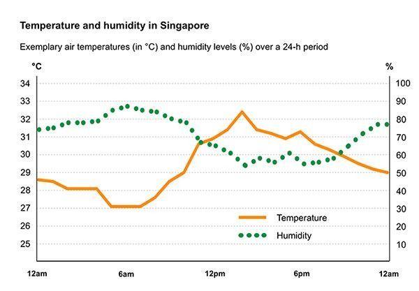 新加坡以其炎熱潮濕的天氣而聞名。島上氣候全年變化不大。白天的平均溫度為 31oC (88oF)。而在晚上,溫度會(huì)下降到大約 24oC (75oF)。由于每年 11 月開始進(jìn)入雨季,建議游客在此期間帶上雨傘。