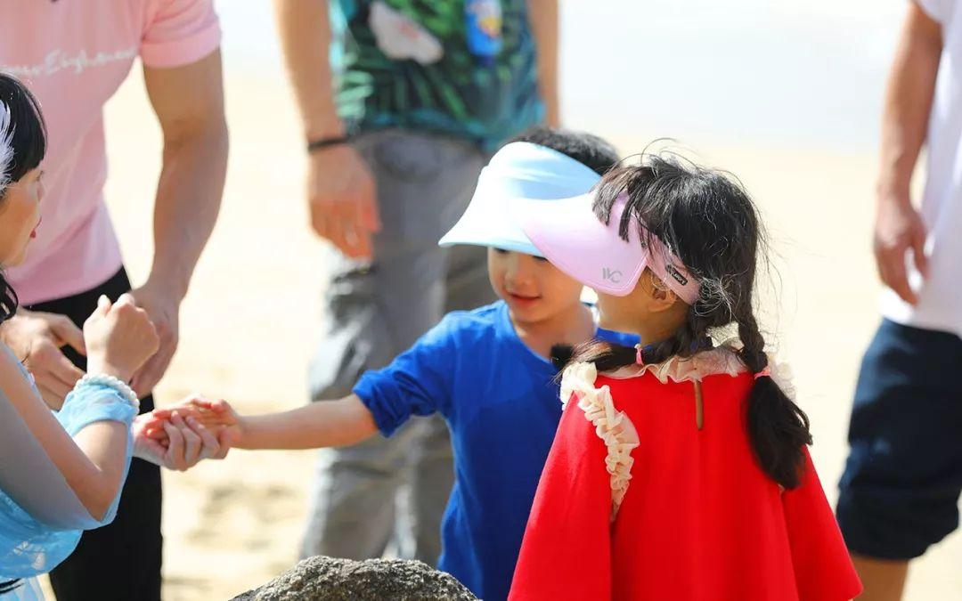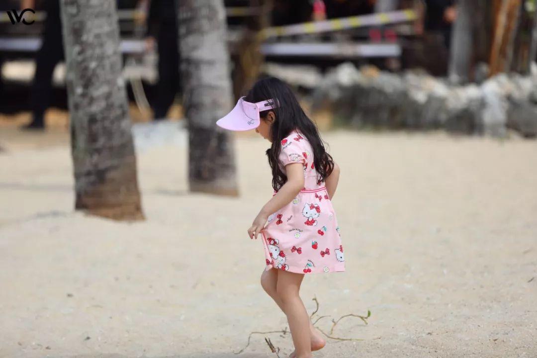 小泡芙戴的粉色款,在沙灘上也是奪人眼球的小少女一枚。