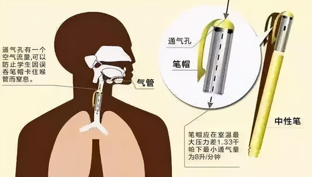 值得一提的是,誤吞筆帽致兒童出現(xiàn)呼吸困難的事件時(shí)有發(fā)生。而根據(jù)標(biāo)準(zhǔn)規(guī)定,直徑小于16mm的書寫筆筆帽應(yīng)打孔或留有通氣面積,一旦被誤吞,這個(gè)小孔可以起到通氣作用,避免堵塞兒童的氣管。