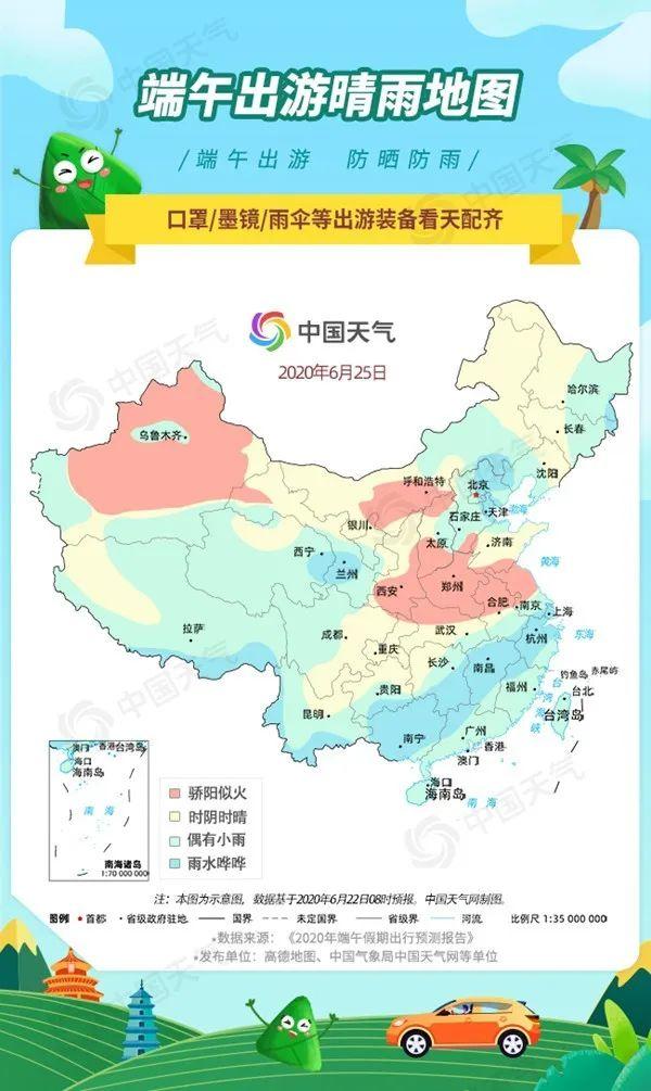 降雨方面,廣西北部、湖南南部、江西北部、浙江北部、上海等地在端午節(jié)當(dāng)天雨勢很強(qiáng),會(huì)有大到暴雨出現(xiàn),局地甚至有大暴雨。不過假期后兩天,當(dāng)?shù)赜陝輹?huì)減弱停歇。提醒準(zhǔn)備去這些地方旅游的小伙伴們,一定要帶上雨傘、雨衣,同時(shí)關(guān)注新的天氣預(yù)報(bào)預(yù)警信息,避開強(qiáng)降雨時(shí)段,出游。