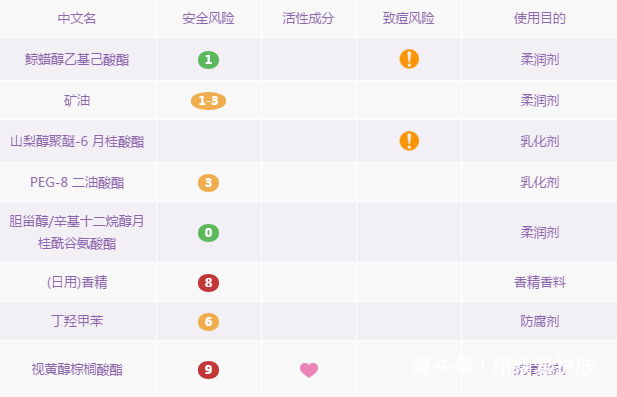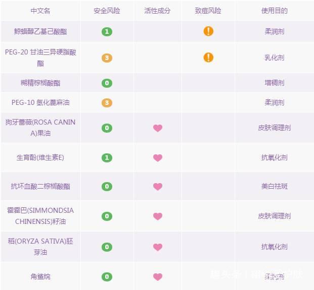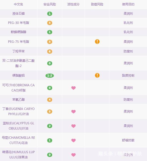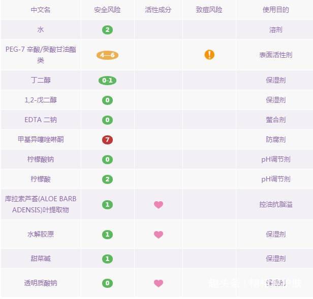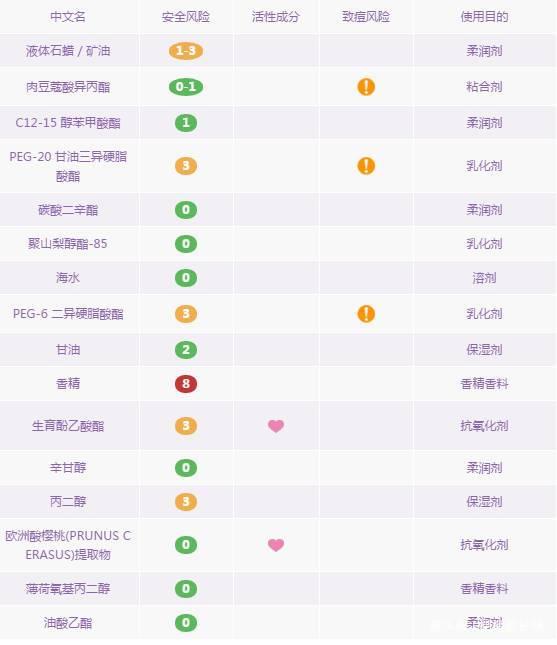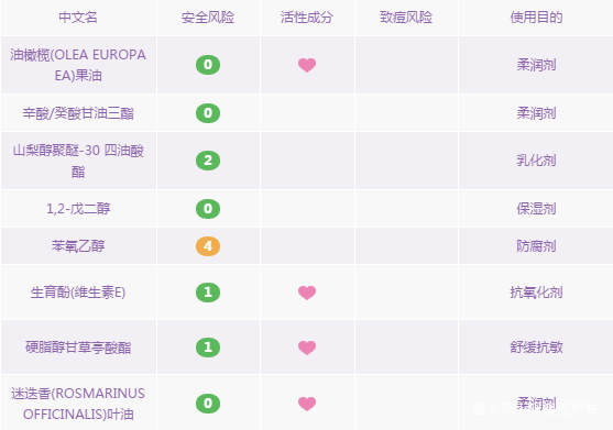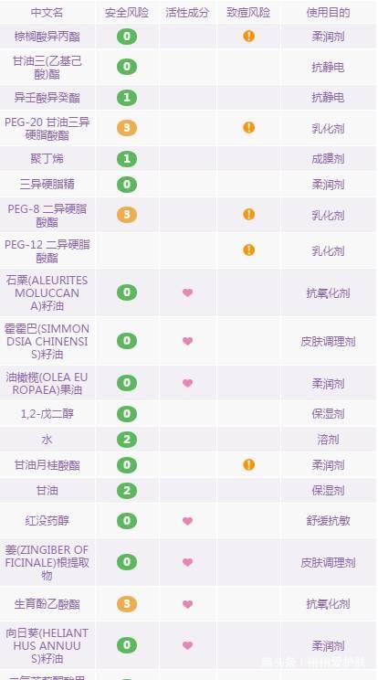 其實(shí)對(duì)于卸妝產(chǎn)品來說, 重要的選擇的標(biāo)準(zhǔn)不是安心度, 因?yàn)樾秺y產(chǎn)品在臉上的時(shí)間很短暫, 這個(gè)卸妝產(chǎn)品的安心度得分, 大家只是看看好了, 得分越高的只能說明成分夠簡(jiǎn)約,功效性成分包含的更少。