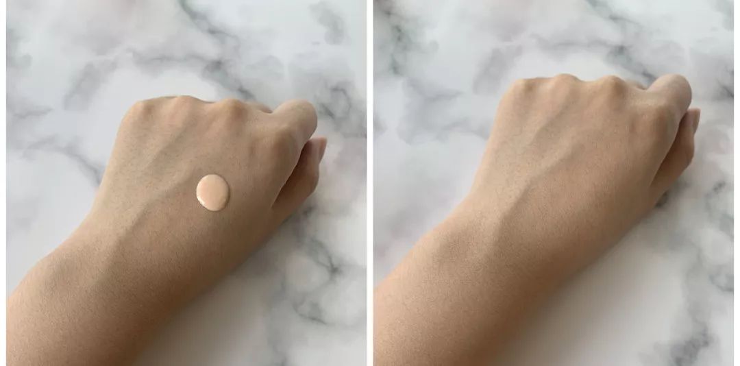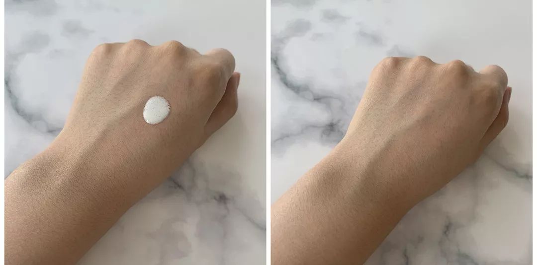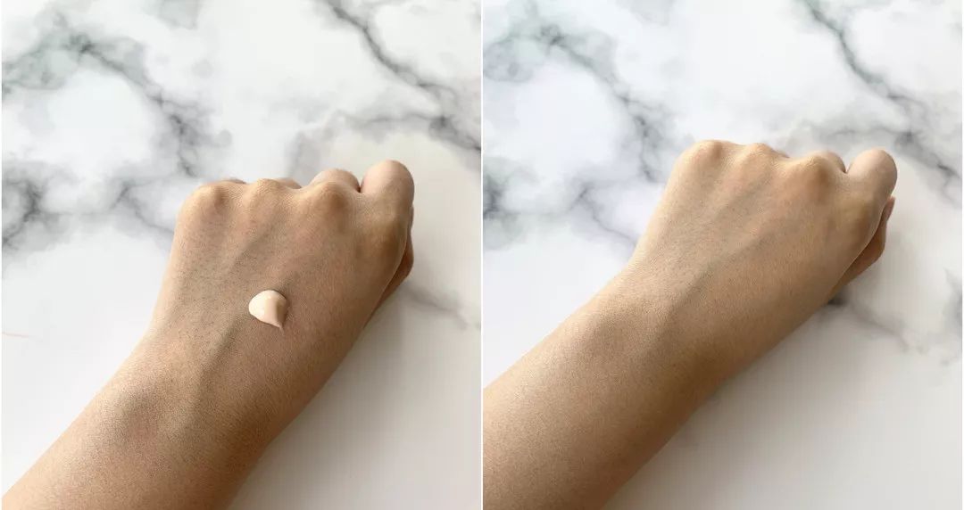 在剛剛涂抹在皮膚上的時候會有一點點油的感覺,但過一會之后就不會有這種感覺了,成膜速度特別快,而且防水果也很好。