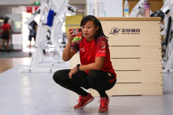 訓練間隙,場邊休息的運動員人手一個大水瓶,臉上曬化的防曬霜與汗水混雜在一起,愛美的女孩子用紙輕柔地擦掉汗滴。“每天只有訓練、睡覺、吃飯,大家都在相互比著練、拼著練,回到寢室躺在床上一閉眼就能睡著。”運動員鄭文燕說。