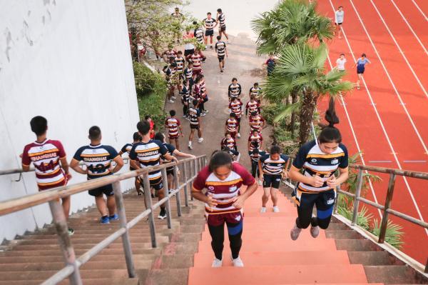 橄欖球隊員們進行室外訓練。
