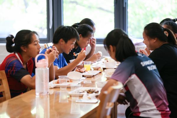 學校后勤充分保障隊員們的多種類營養(yǎng)膳食。