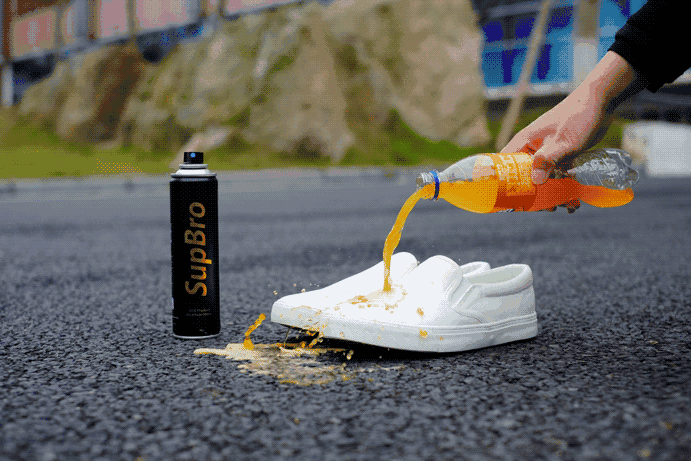 Sup Bro 納米防污噴霧就是這種“怕臟綜合癥”的大救星,它采用了納米科技,噴在鞋面上就相當于給鞋面加上一層保護膜,避水性超強,就連醬汁之類的都不會粘在鞋面上。