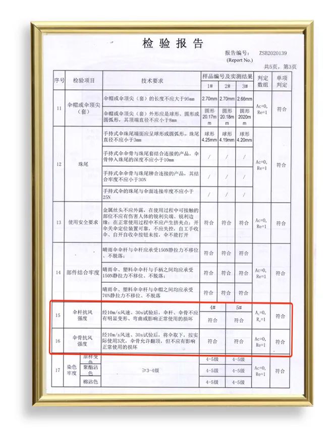 還有色牢度、防皺、傘骨手開600次,自開400次,都依舊如新。各項(xiàng)指標(biāo)通過(guò)了檢測(cè)所有質(zhì)量檢測(cè),不脫離、不露邊、不跳針,不斷線。