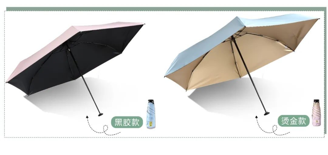 這款傘分內(nèi)層,黑膠和金膠。除了里層的顏色不同外,材質(zhì)做工都是一樣的。