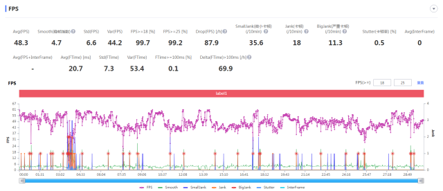 (NothingPhone(1)在原神中畫質(zhì)+60幀模式下30分鐘,測得平均48.3fps)