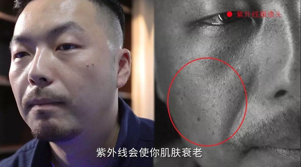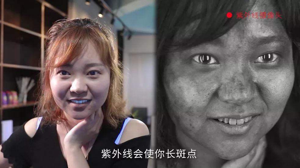 大家可以看下面的“光老化”實(shí)驗(yàn),人臉在紫外線鏡頭下會(huì)暴露出肉眼不可見(jiàn)的“紫外線殘留傷害”。很多肉眼看起來(lái)皮膚不錯(cuò)的年輕人,在紫外線鏡頭下一照,各種膚質(zhì)問(wèn)題都暴露無(wú)遺了。