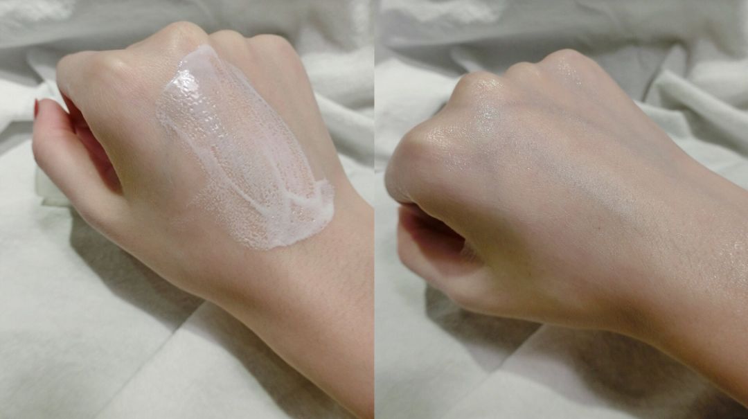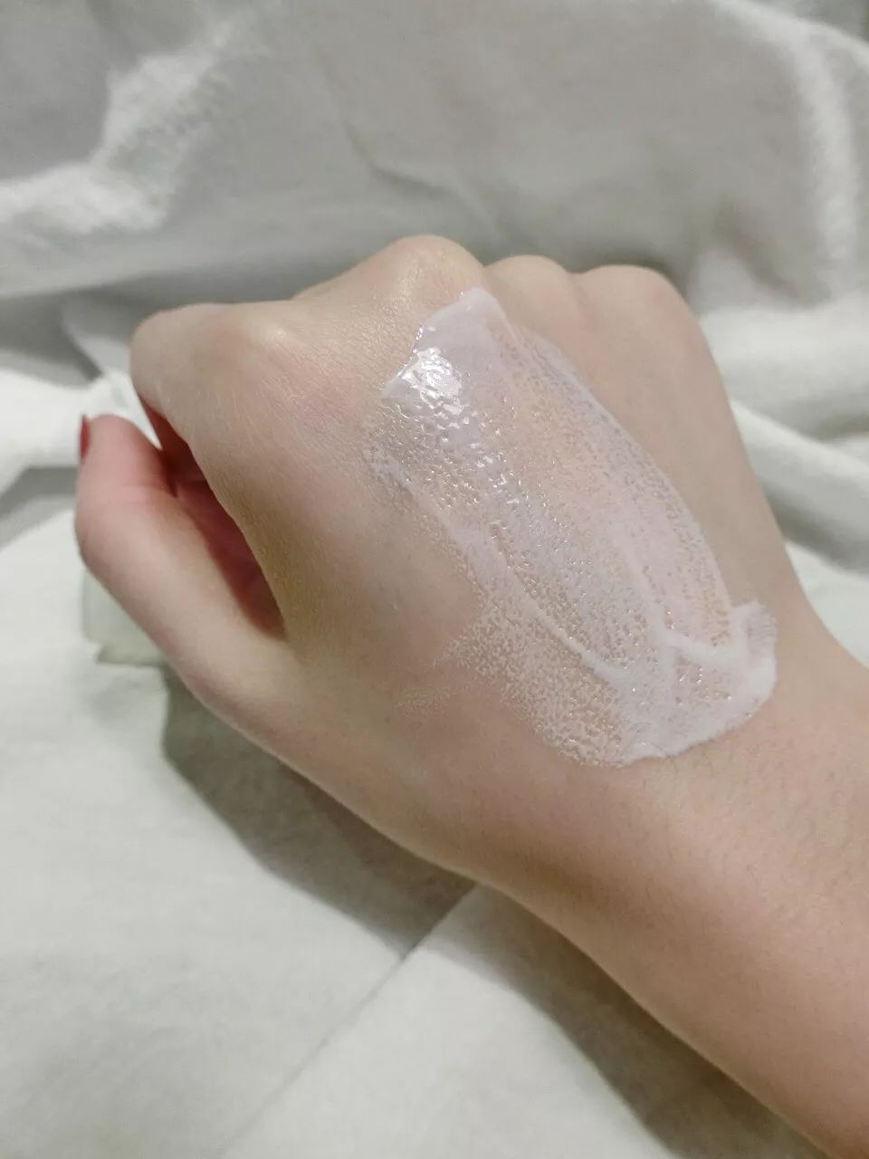 用手輕輕一抹,還會(huì)看到乳化后的小水珠,很快就會(huì)被皮膚吸收。