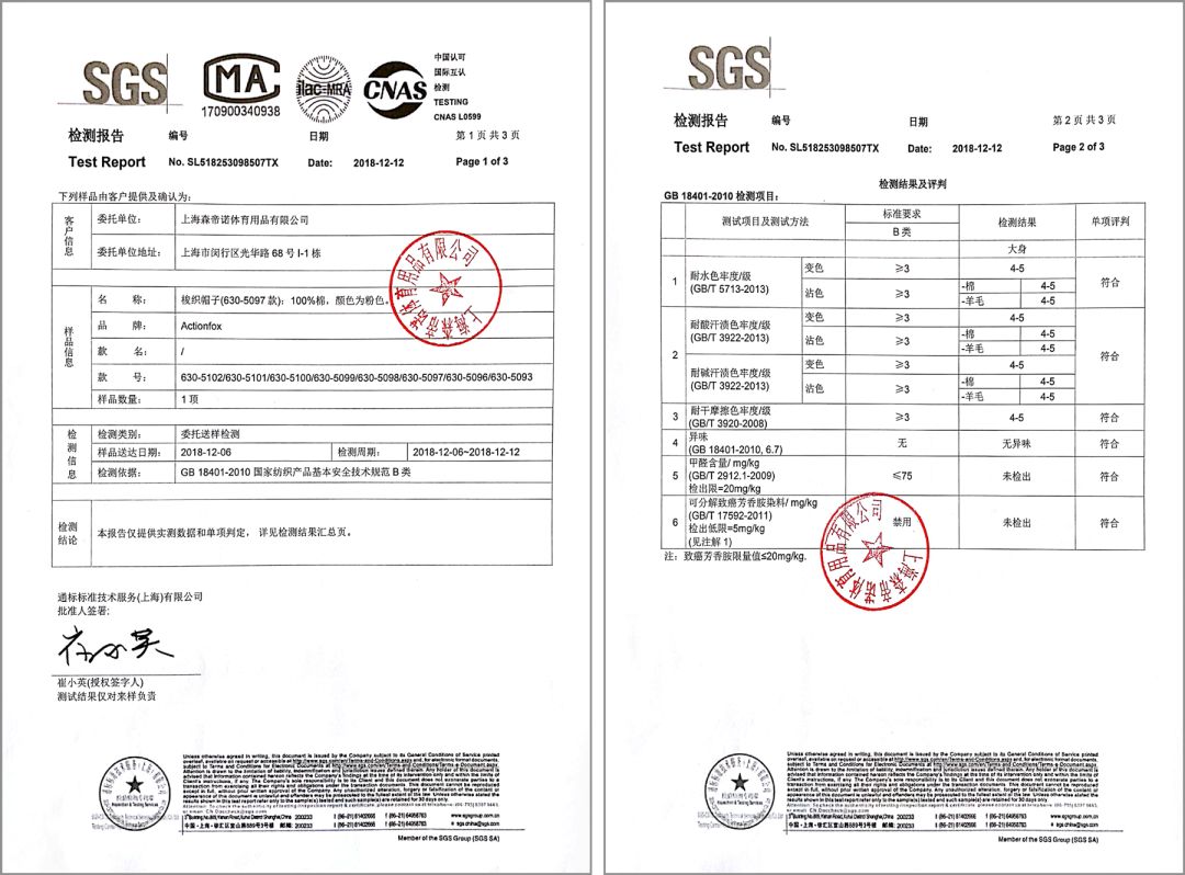 SGS檢測報告