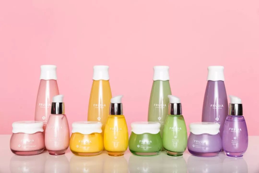 后來推薦一個(gè)這兩年在韓國火速走紅的品牌FRUDIA,是韓國老牌化妝品生產(chǎn)企業(yè)WELCOS旗下的品牌,以天然果汁精華做的護(hù)膚品,產(chǎn)品系列都是很水果相關(guān)的:青葡萄毛孔護(hù)理系列、柑橘肌膚美白系列、石榴抗氧化修護(hù)系列、藍(lán)莓鎖水保濕系列、牛油果抗敏鎮(zhèn)靜系列及其他手部、唇部護(hù)理系列,外觀看起來很像果醬很誘人對不對,圈粉能力可以說是勢不可檔。