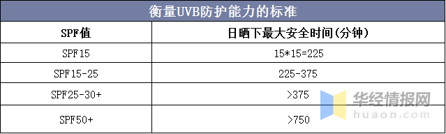 以SPF值衡量UVB的防護能力,即太陽輻射使皮膚變紅所需要的時間,體現(xiàn)了產(chǎn)品的防曬傷能力。