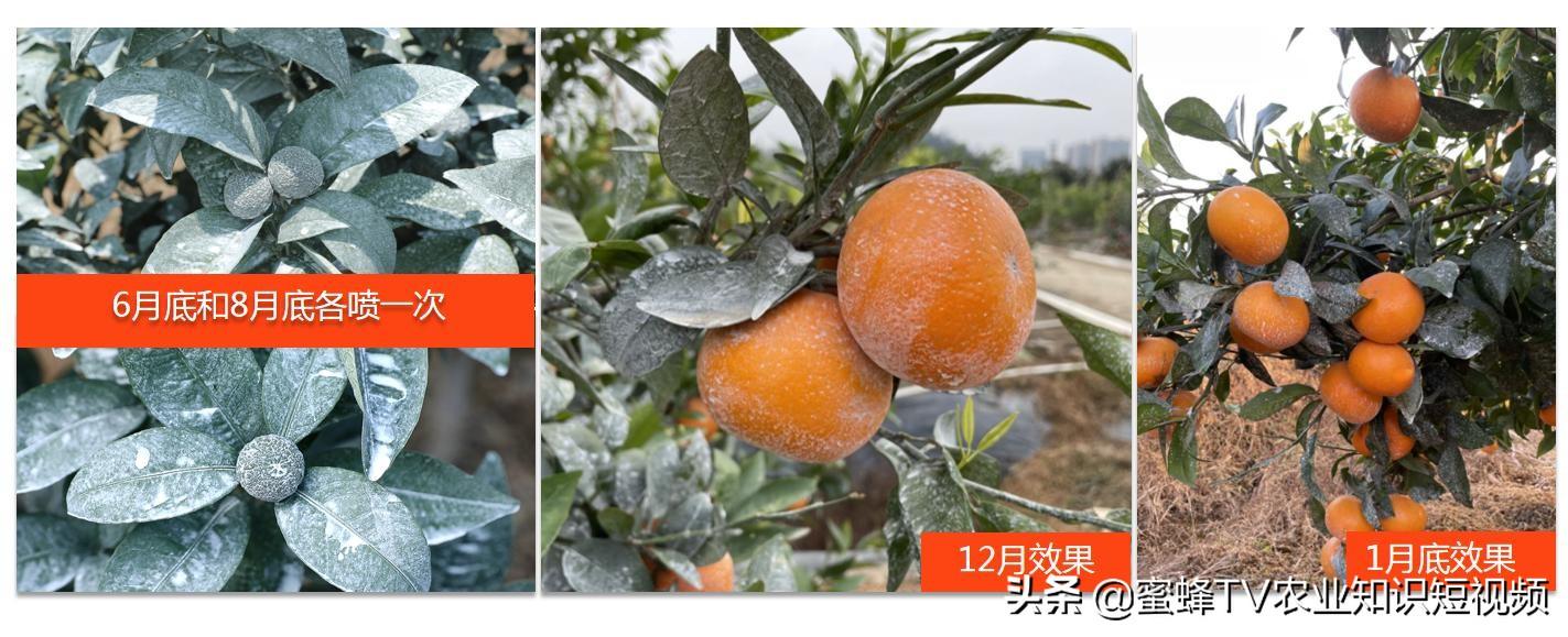 柑橘果實(shí)長(zhǎng)到4公分左右(乒乓球大?。╅_始使用,一年噴2次即可。第一次是在6月底7月初,第二次是在8月中旬使用就可以。