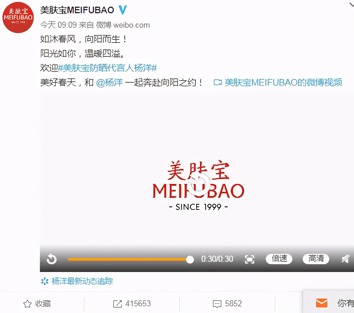 春節(jié)期間,被稱為國(guó)貨防曬品牌的美膚寶攜手萬(wàn)達(dá)傳媒,強(qiáng)勢(shì)開(kāi)啟賀歲檔映前廣告霸屏模式。就在3月5日上午9點(diǎn)多,美膚寶重磅官宣楊洋為品牌防曬代言人。截至當(dāng)天中午12時(shí),該條微博轉(zhuǎn)發(fā)量已突破41萬(wàn), 關(guān)于#美膚寶防曬代言人楊洋#的微博話題閱讀量也超1100萬(wàn)。