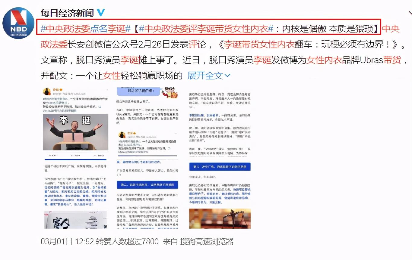 前段時(shí)間,脫口秀演員李誕在微博上帶貨Ubras品牌內(nèi)衣,文案為“職場(chǎng)救生衣,一個(gè)讓女性輕松躺贏的裝備”,該文案隨即引發(fā)了巨大爭(zhēng)議,被認(rèn)為侮辱職場(chǎng)女性,并被質(zhì)疑男性藝人是否應(yīng)當(dāng)為內(nèi)衣做廣告。還有細(xì)心的網(wǎng)友發(fā)現(xiàn),李誕這次直播帶貨還疑似違法。