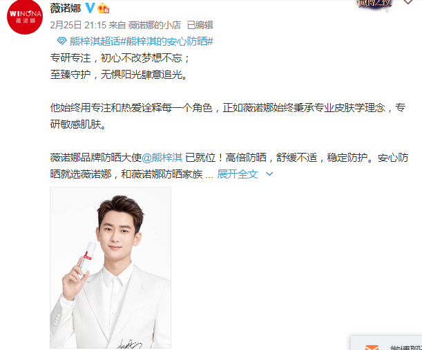 鑒于防曬品類的高速增長(zhǎng),及其釋放出的巨大潛力,不少美妝品牌便早早瞄準(zhǔn)防曬市場(chǎng),準(zhǔn)備打一場(chǎng)漂亮的防曬仗。2月25日,專注敏感肌護(hù)理薇諾娜官宣顏值與實(shí)力并存的演員熊梓淇成為品牌防曬大使。