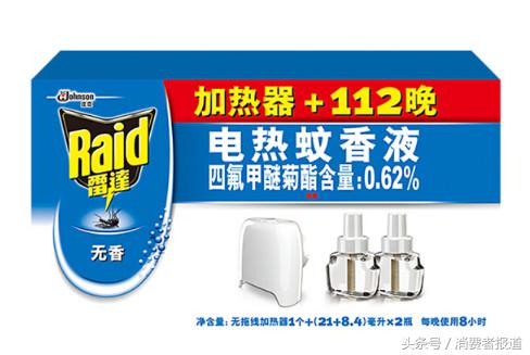 消費(fèi)者選購電熱蚊香時可留意擬除蟲菊酯(或其他的有效成分)含量,比如雷達(dá)無香型電熱蚊香液宣稱的四氟甲醚菊酯含量為0.62%,而超威艾草清香型電熱蚊香液宣稱的氯氟醚菊酯含量為1%。