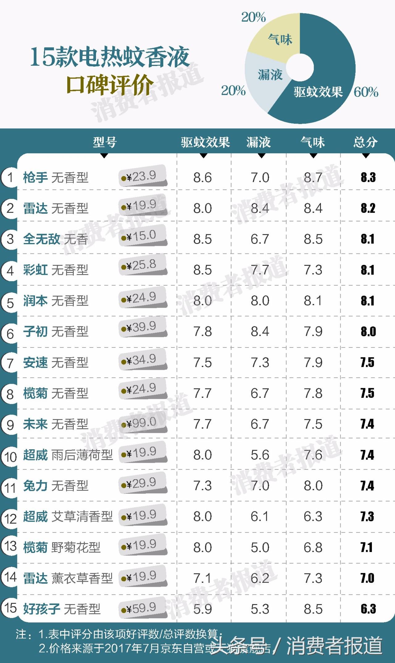 4.8萬條關(guān)于電熱蚊香液的評價數(shù)據(jù)顯示,15款電熱蚊香液表現(xiàn)參差不齊,其中槍手、雷達(dá)表現(xiàn)出色,無香型電熱蚊香液大多都比有特定香味(如艾草型、野菊花型等)的電熱蚊香液受歡迎。